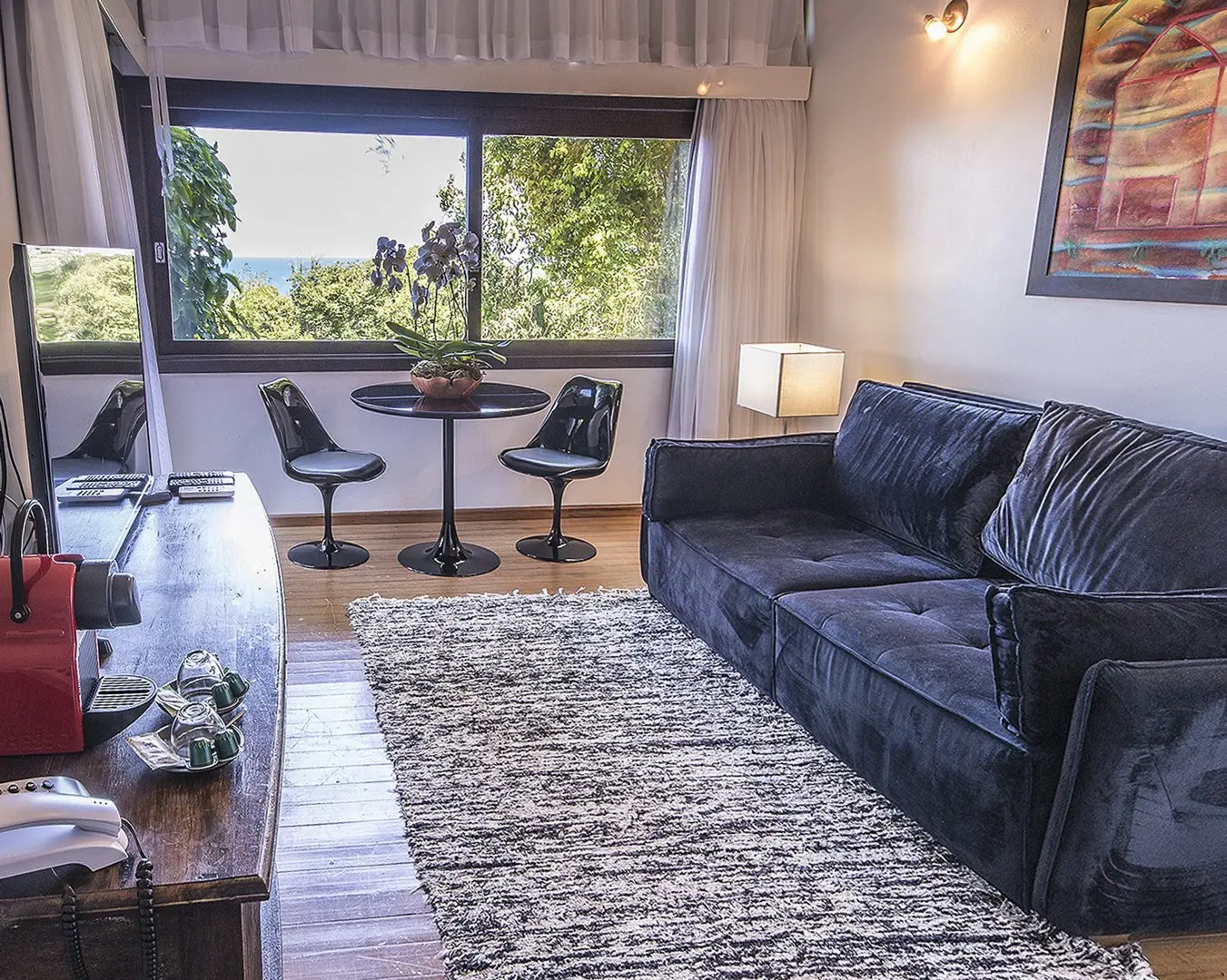 A decoração, com seu toque sofisticado, realça a identidade aconchegante do Rosa. Finalmente, a varanda é o lugar perfeito para se deslumbrar com uma bela vista do mar, emoldurada pela serenidade da natureza.